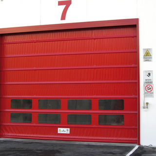 Progettate per adattarsi a qualsiasi tipo di ambiente industriale, le porte ad impacchettamento rapido Fulmine sono la soluzione ottimale per transiti veloci e frequenti grazie alla loro rapidità di apertura e di chiusura automatica per mezzo di cinghie di sollevamento che alzano e raccolgono progressivamente le diverse sezioni nella parte superiore della porta.